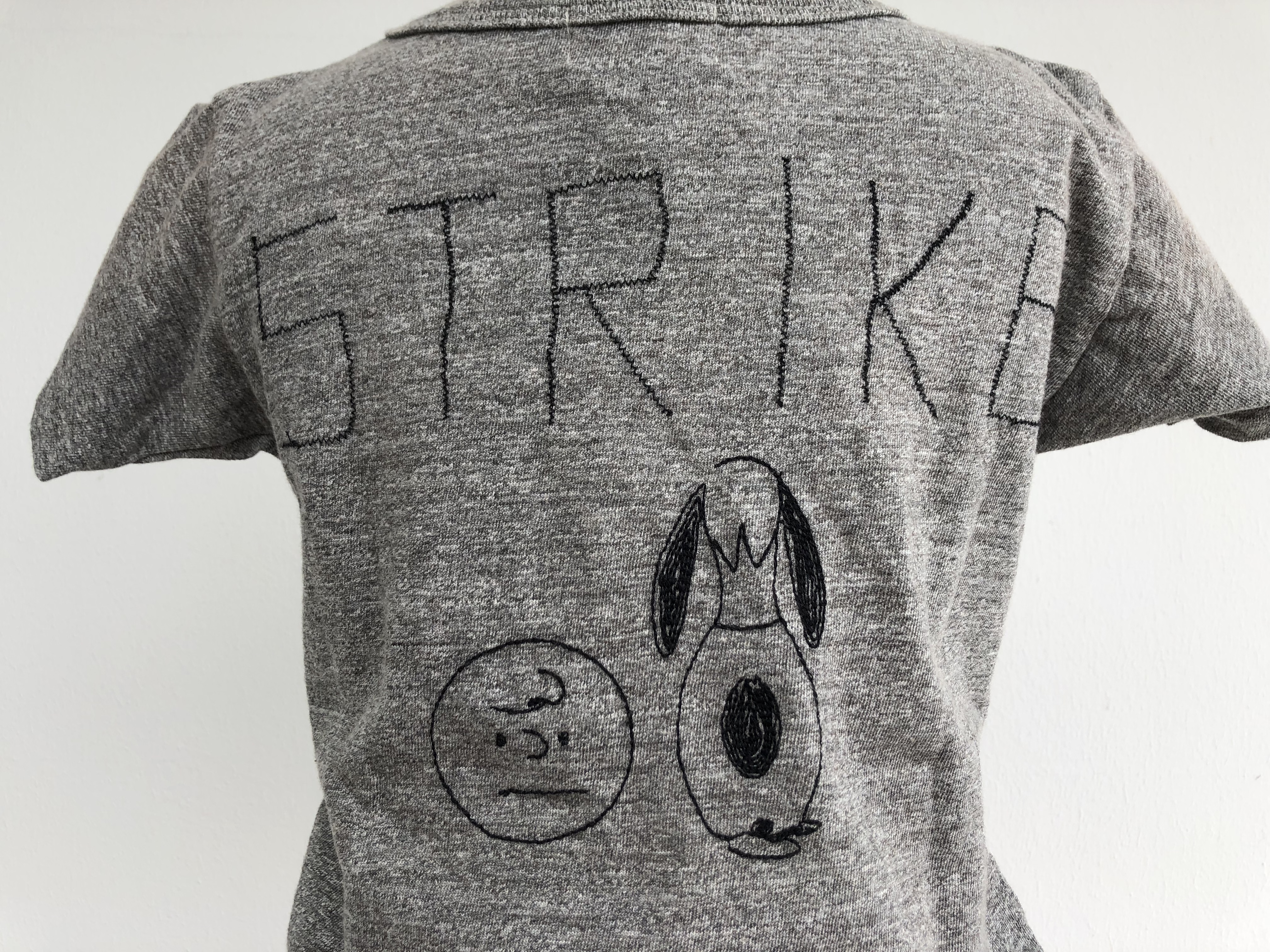 背中には刺繍でイラストとメッセージが施されています。