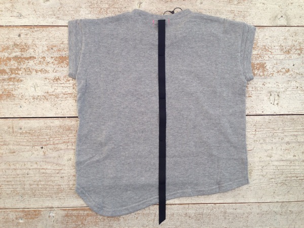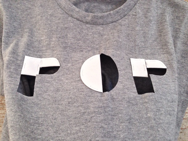胸元の”POP”がかわいいTシャツ。 黒い部分は、よく見ると切り取られています。 後ろにはラインテープが。