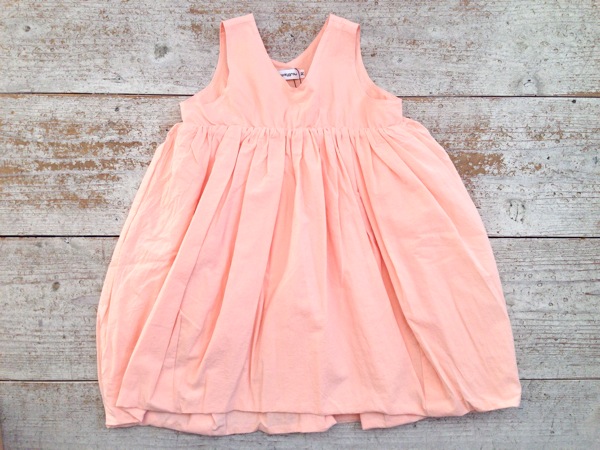 たっぷりのギャザーでふんわりシルエットのワンピース。 背中のネオンカラーのボタンもかわいいポイントです。