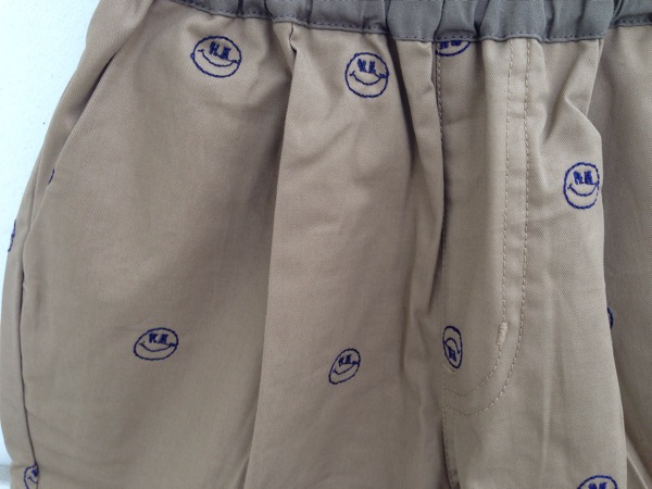 毎年人気のフィールドショートパンツの新柄は、フラッグとウェーブ柄‼︎ひざ丈のハーフパンツです。 スマイルマークの総柄刺しゅうがポイントのショートパンツ。ワンタック入りで、シルエットもきれいです。*field shorts size:90〜150 color:グレー price:¥4,300+tax〜