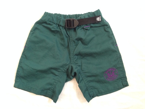 ひざ上丈の、シルエットがきれいなショートパンツ。たくさん遊ぶキッズに大人気です。 深いグリーンに、パープルのワンポイントがかっこいいですね。*stream shorts size:100〜150 color:グリーン price:¥3,800+tax〜