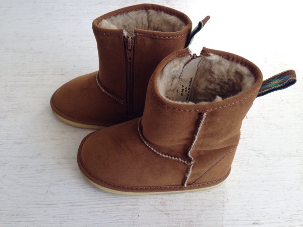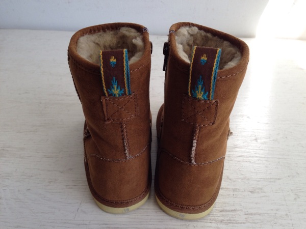 後ろのチロリアンテープがアクセントの、暖かくてかわいいブーツです。 パンツをブーツインしてもかわいいので、いろいろなオシャレが楽しめます。*SHEEP SKIN TYPE BOOTS size:13cm〜18cm color:キャメル price:¥4,300+tax
