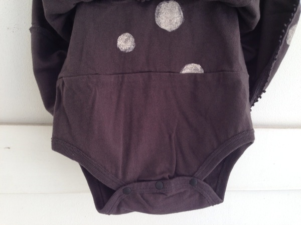 一見ワンピースのようにも見えるロンパース。手描き風のドットがキュートです。 身ごろ部分は2枚仕立てになっているので、babyのお腹をしっかり守ってくれます。 パフスリーブにギャザースカート、かわいいとこ取りのロンパースです。*レイヤード ドットプリントロンパース size:70 color:ホワイト、ベージュ、ブラック price:¥6,900+tax