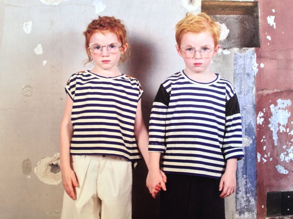 伸びが良く、丈が長めのボーダーTシャツ。 定番の白黒ボーダーと、そで&前後のカラーが違うボーダーの2パターンあります。 割りと肉厚の素材なので、インナーとして着ても温かそうです。*テレコボーダー L/S Tシャツ size:110〜140,F color:ホワイト、クレイジーボーダー price:¥4,900+tax〜