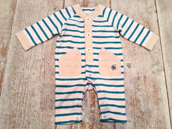 frankygrowから、かぶりタイプのボーダーロンパースが入荷しました。